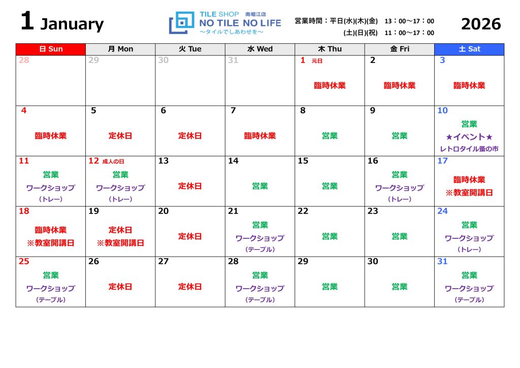 ※WorkShop開催日もSHOPは通常通り営業しています